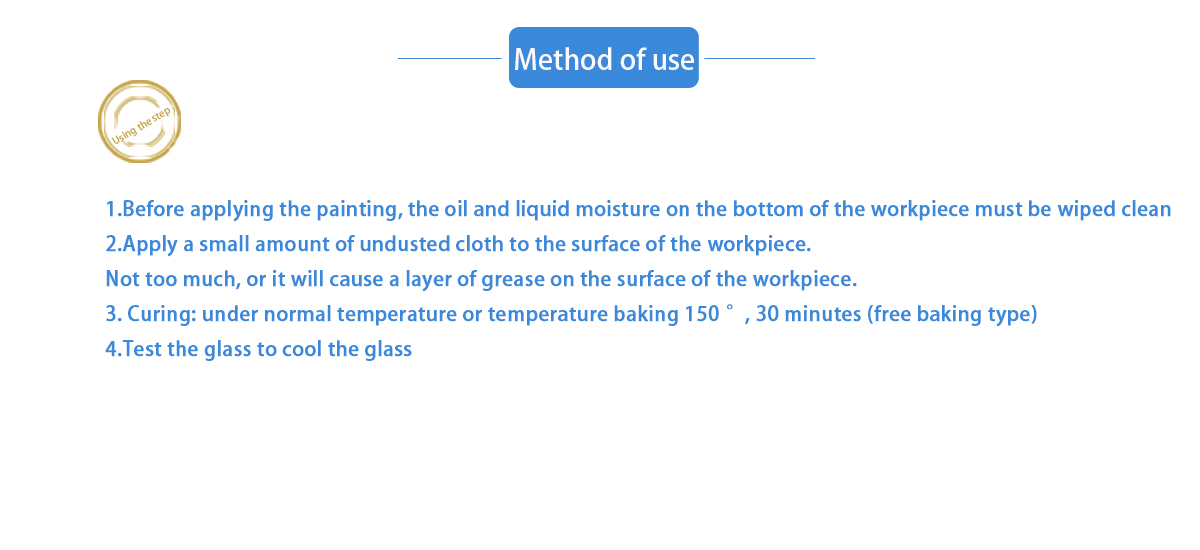 3. Curing: under normal temperature or temperature baking 150 °, 30 minutes (free baking type)