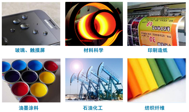Product application areas: glass, touch screens, films, polymers, materials science, electronic circuits, printing and papermaking, textile fibers, ink coatings, chemistry, medical care, petrochemicals.