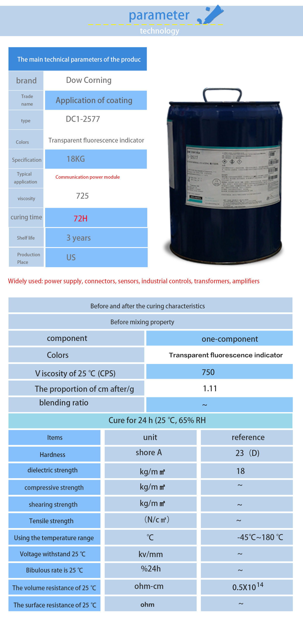 Dow corning 1-2577 is mainly used for the protection of rigid and flexible circuit boards.