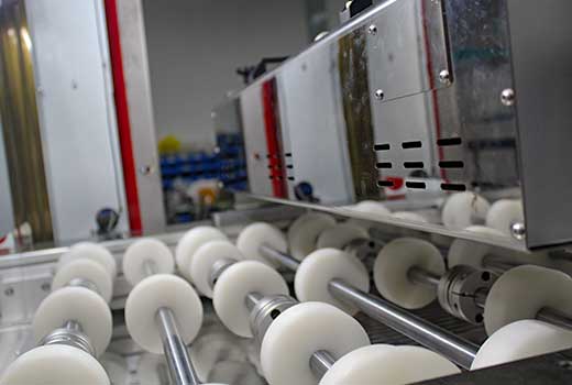 1、輸送線采用密集輪式傳送機構(gòu),滾輪表面拋光,防止劃傷產(chǎn)品,驅(qū)動軸為不銹鋼304制作,防止生銹,經(jīng)久耐用。驅(qū)動由伺服電機驅(qū)動,速度可控,平穩(wěn).