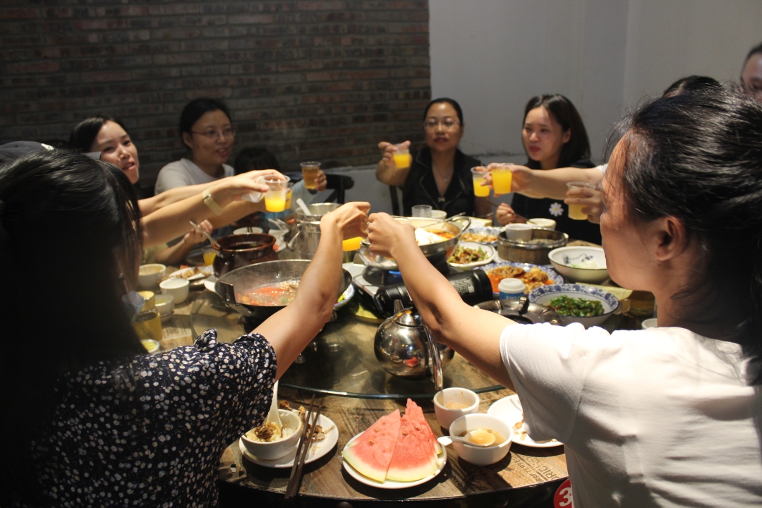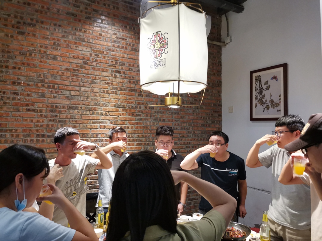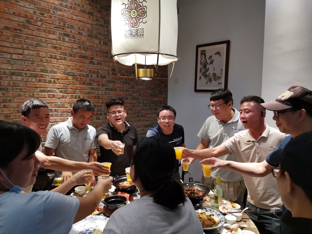 大家輪番敬酒。杯酒之情,一切盡在杯中。這里有最可愛的同事,最親切的領(lǐng)導(dǎo),最可口的佳肴,最溫暖的震儀大家庭。