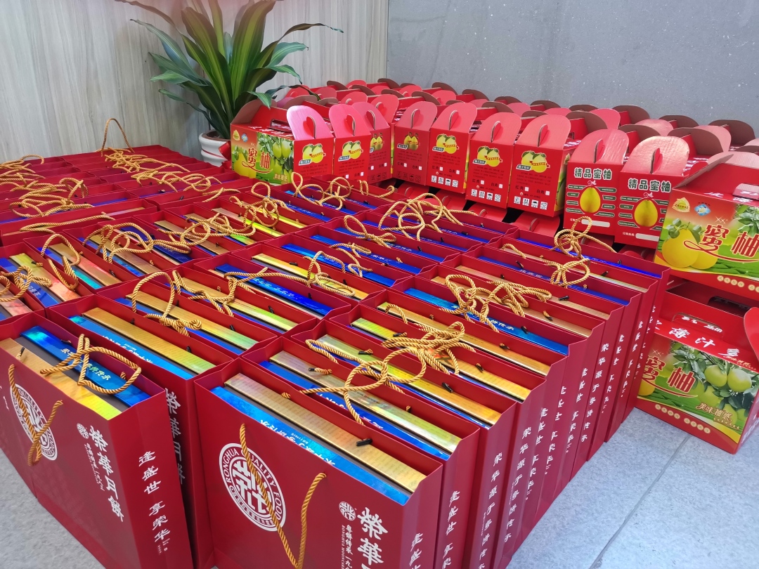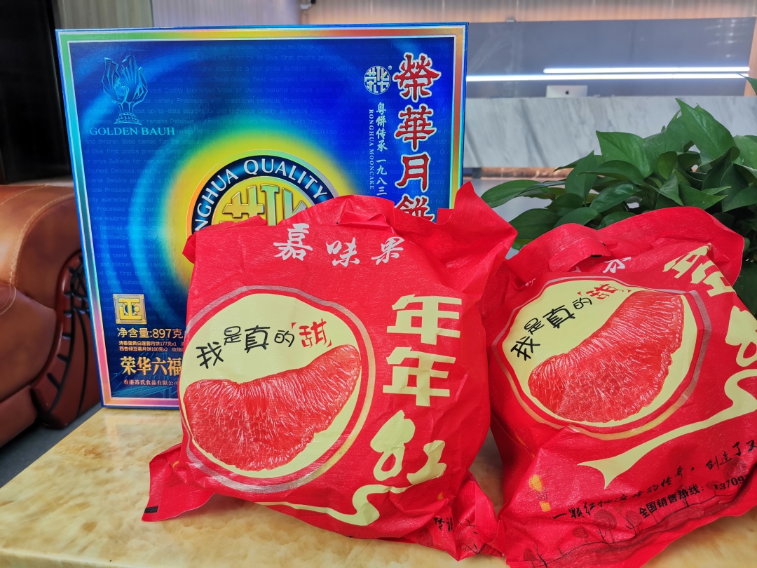 公司為感謝員工的辛勤付出,于每人發(fā)送一份豐富的中秋禮品,一盒精美的月餅,一箱甜甜的紅柚。滿滿的都是愛。